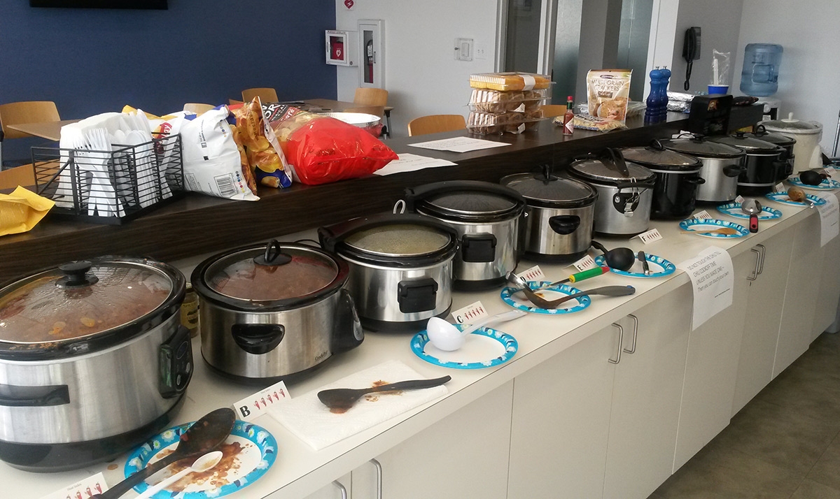 Over the past 7 years, we have had anywhere from 5 to 15 chili entries as Marathon employees bring their best recipes to the table to be tasted and judged. We’ve had winners that held the crown for a few seasons before being knocked down by newcomers, and each year it’s an exciting challenge to decide who will be the king or queen of the chili. This year was no exception, as almost everyone agreed it was the hardest group of chili to vote for yet; they were all so delicious!