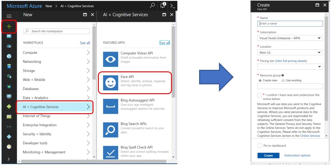 Step 1 – Login to your Microsoft Azure account and add a Face API subscription.