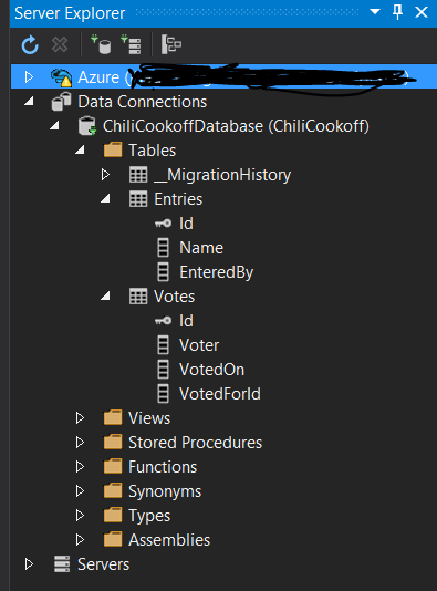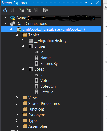 Now we’ll add another new class to capture the votes. In the ChiliCookoff.Data project, create a new class called “Vote.cs” and enter the code below.