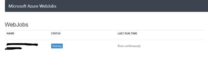 The main WebJobs page lists your WebJobs and their status. Click on the name of your WebJob to see its details.
