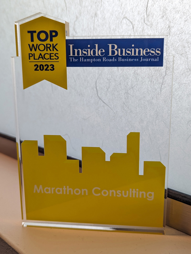 Virginia Beach, VA., September 7, 2023 - Marathon Consulting, LLC, a Virginia-based Information Technology Consulting and Digital Marketing firm, was recently recognized as one of the 2023 Top Workplaces in Hampton Roads by Inside Business.